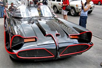 Holy crap! All kinds of folks were hovering around this icon of pop culture. Freaks and geeks of all ages were gazing, pointing and posing next to Batman's ride. Yours truly had a grin as big as The Joker plastered on my face. Snapping photos of Batfans big and small. I also had a tinge of pity for the poor blokes in costume as Batman. It was after all, pretty damn hot out there. At least Robin's costume is mostly just a domino mask and exposed legs. Batman's cape and cowl does not equal comfortable summer attire. Here's hoping Gotham City has a much cooler climate than Austin.